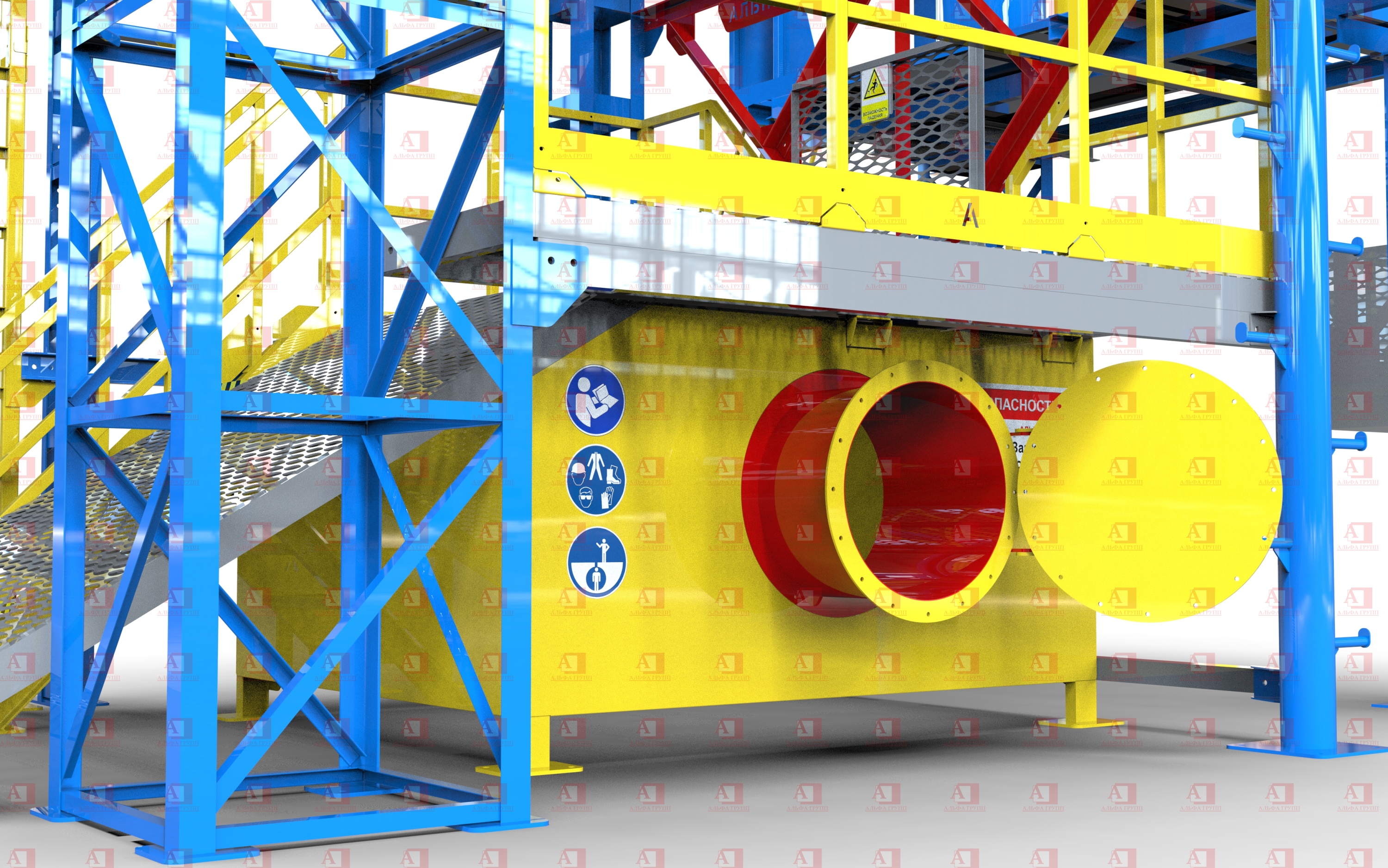 Доступ на рабочую площадку второго уровня осуществляется по стальной маршевой лестнице.